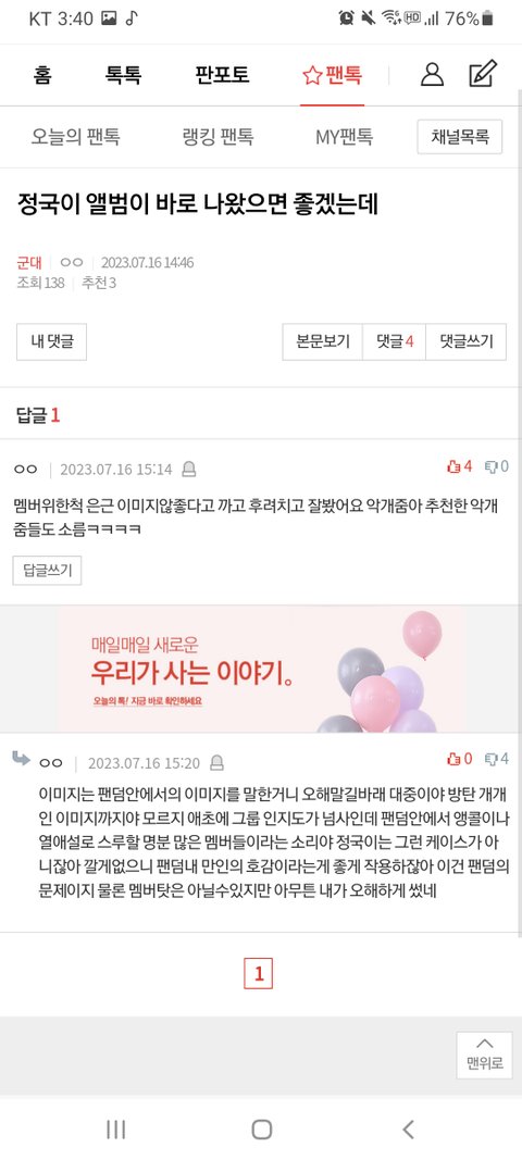 오늘의 팬톡