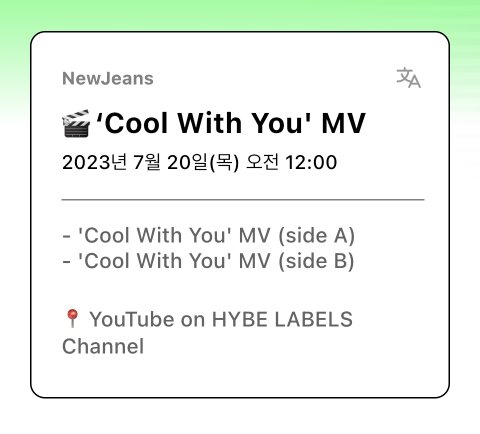 목요일에 뉴진스 쿨윗유 뮤비 선공개!!