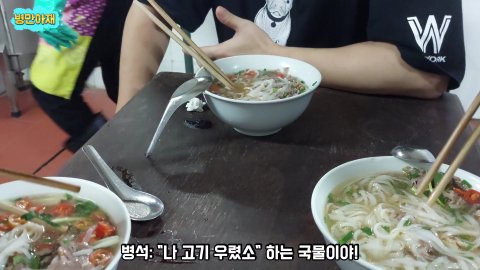 주방에서 쌀국수를 받아서 먹어야 합니다.