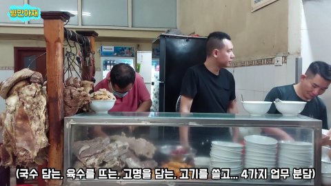 고기를 썰어주는 직원, 고명을 넣어주는 직원, 쌀국수 면을 담는 직원, 육수를 담는 직원!!!