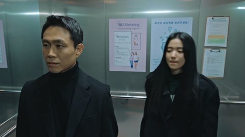 염해상과 둘이 엘리베이터에 탄 여주 구산영(김태리)