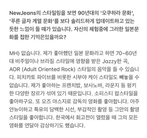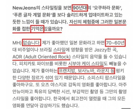 일본기자의 질문 늬앙스가 '뉴진스는 90년대 일본문화의 영향을 받은거냐는 거냐?' 임