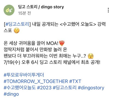 껌깅이들 딩고스토리 수고했어 오늘도 나오나 봐!