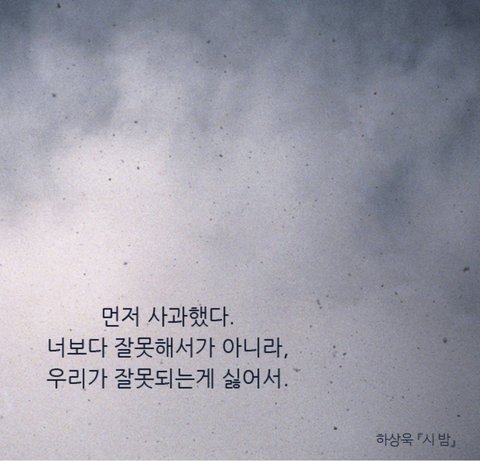 '먼저 사과했다 너보다 잘못해서가 아니라 우리가 잘못되는 게 싫어서.'