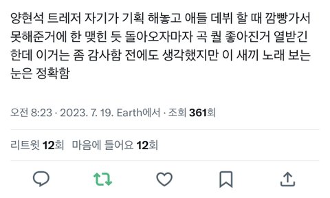이번에 애들 노래 너무 좋아…. 지금 와쥐도 자신감 넘쳐서 타이틀도 넘 기대돼… 지금 2세대 케이팝 열렸어…