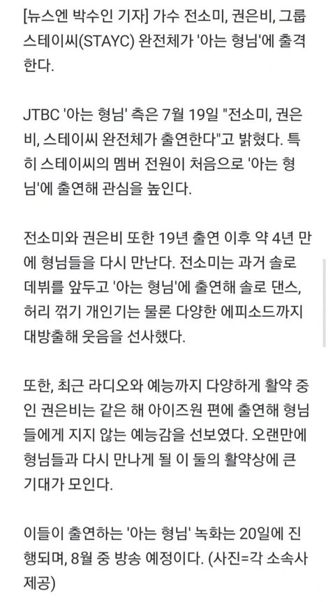 전소미 권은비 스테이씨 ‘아는형님’ 출격 “8월 중 방송 예정”