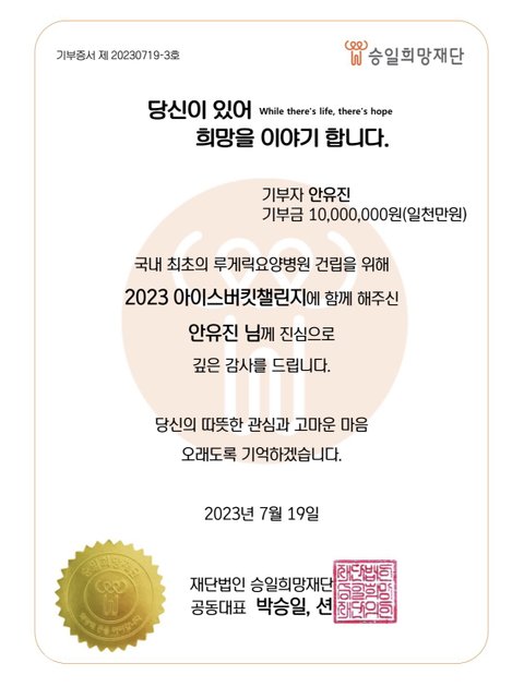 안유진 아이스버킷 챌린지로 천만원 기부함