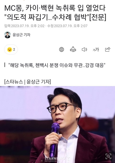 몰래 녹취된거라 불법녹취일뿐이지 mc몽이 그 말을 하긴 했다는거네ㅋㅋ 잘가라 첸백시ㅋㅋㅋ