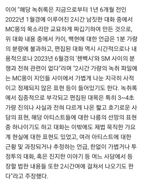 녹취본은 불법녹취이고 카이백현에 대한 언급은 그냥 선망의 대상으로 말한거고 첸백시 사태랑 관련 없다고 함