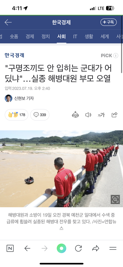 개에바 아니냐고 이 난리 치는 곳에 지금 구명조끼 없이 군인들 들어간 거임 그것도 일병 사망했다는데 말이 됨? 왜 대민지원을 왜 군인들이 가야 하냐고 어느 정도 필요한 건 알겠는데 목숨이 왔다갔다 하는 상황에서 군인을 쓰면 안 되지 쓸 거면 안전 보장 해주고 쓰든가 진짜 대민지원 보낸 사람들의 가족은 쫄려있어야 하는 게 개빡친다