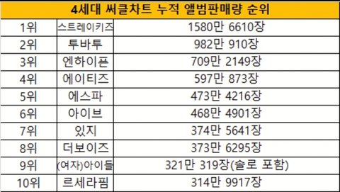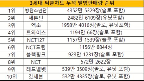 케이팝그룹 앨범 누적 판매량 TOP10