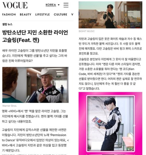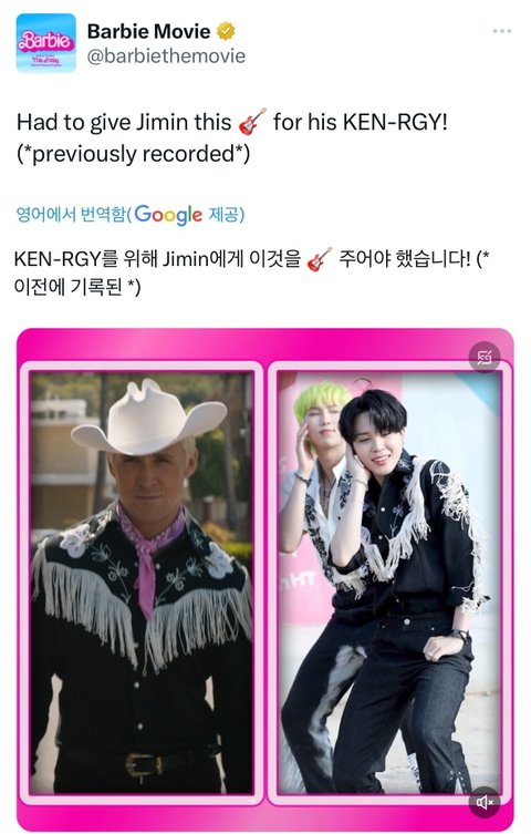 영화 바비 공계 라이언고슬링이 지민이 찾네ㅋㅋㅋ