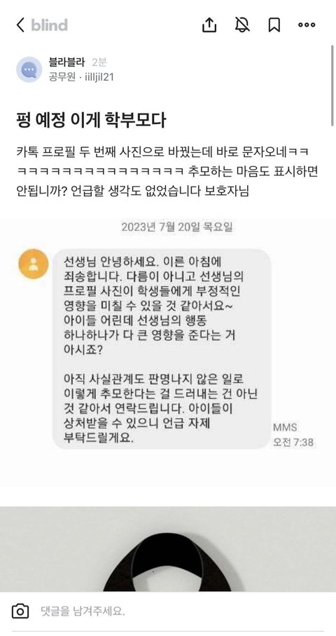 저 학부모 저러고 교무실 전화했다더라 ㅋㅋㅋㅋ 학부모 회의안건으로 올린다고 또 협박하던데. 걍 진상 학부모들은 답없음. 법적으로 학교, 교사한테 문제아, 진상 학부모 거르는 권한 주지 않는이상 교사들 대거 이탈할거고 공교육은 이제 기능자체를 상실할거임.