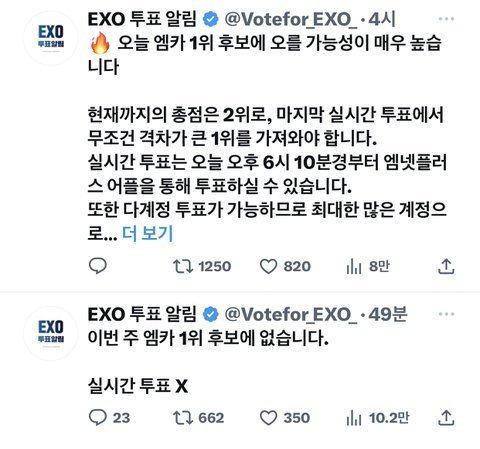방탄x엑소:이번주 엠카1위후보에없습니다.