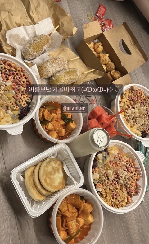 윈터가 에스파 댄서들한테 음식쏨