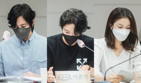'아라문의 검' 대본리딩 현장에는 주연 배우들을 비롯해 드라마를 만들어갈 주역들이 모두 자리했다. 신세경이 코로나19 확진으로 함께 하지 못한 가운데 오랜만에 한자리에 모인 기분 좋은 반가움과 새로운 시작을 앞둔 설렘이 대본리딩 현장을 가득 채웠다.