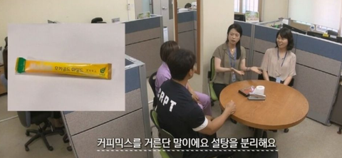 믹스 커피에 있는 설탕을 사용........