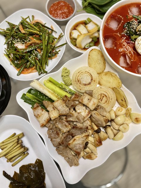 5) 삼겹살&목살구이 , 된장찌개, 열무국수