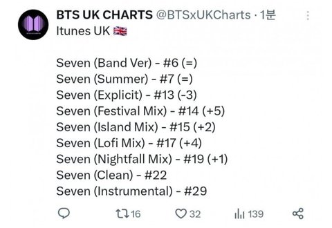 진짜 웃긴게 다이너마이트랑 버터도 3위로 아는데 지민 악개들만 망했다고 그러더라... 자기 최애 성적은 생각 안함