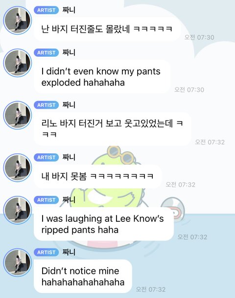바지 터진줄도 모르고 그냥 열심히 추며 휀티 공개하는 리더 방찬