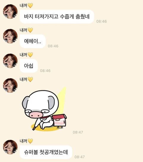 찬이ㅋㅋㅋ 저렇게 크게 찢겼는데 바지 터진 줄도 몰랐대ㅋㅋ