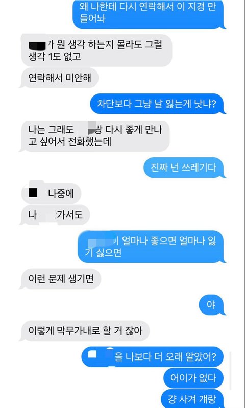 아니면 여사친때문에 계속 헤어지게 되는데 차단 거절하는 게 문제야? 차단도 예전에 했다가 여사친이 욕하면서 개지랄 떠니까 미안하다고 오해라고 하면서 푼 건데.