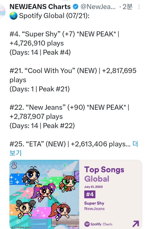 뉴진스는 그냥 팝가수라고 인식하는듯 미국리스너까지 ㅇㅈ