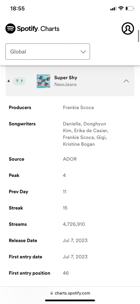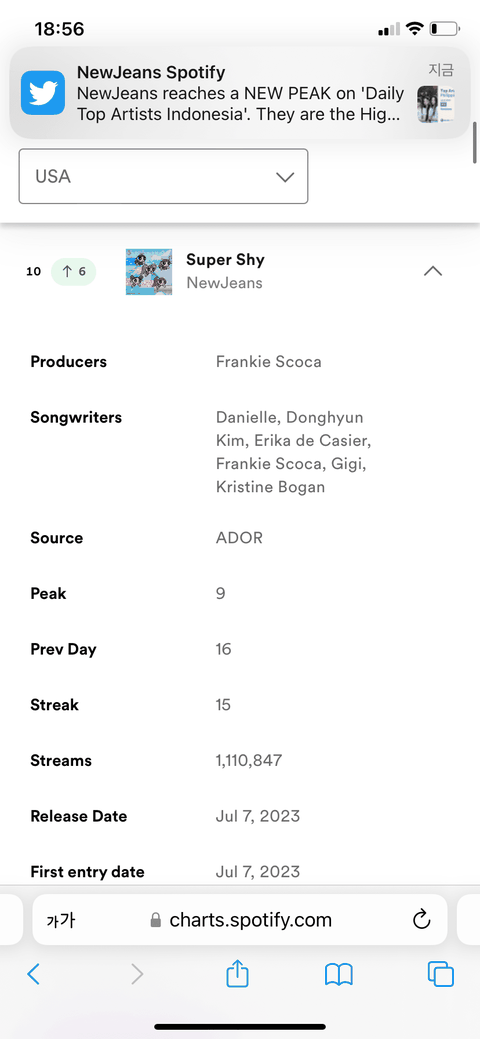 슈퍼샤이 10위 - 110만 스트리밍