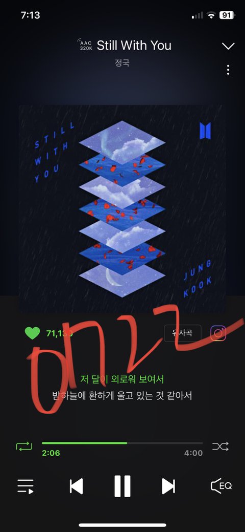 정국이 스포티 계속 천 만대 유지하고 있는 거