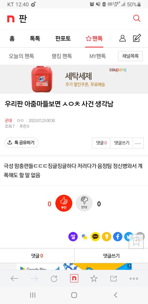 팬톡 댓글 검색 보기