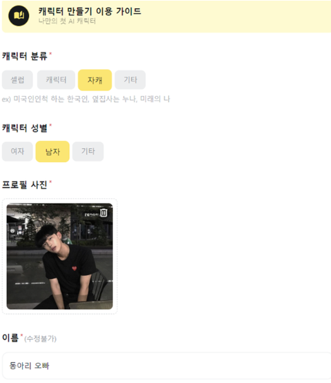 캐릭터 ENFJ에 맞춰서 설정하고, 채팅해봄 두둥