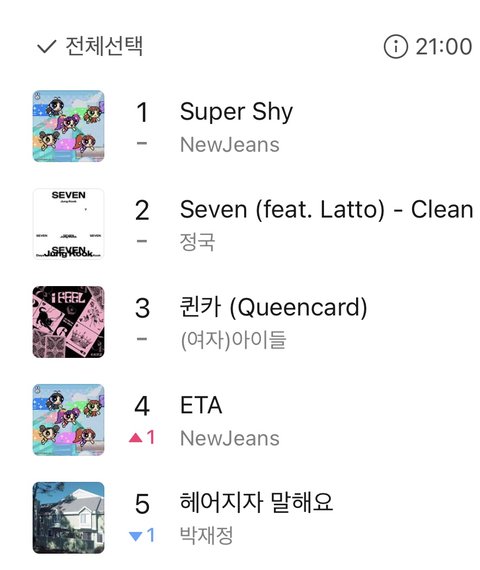 뉴진스 ETA 멜론 4등으로 올랏네