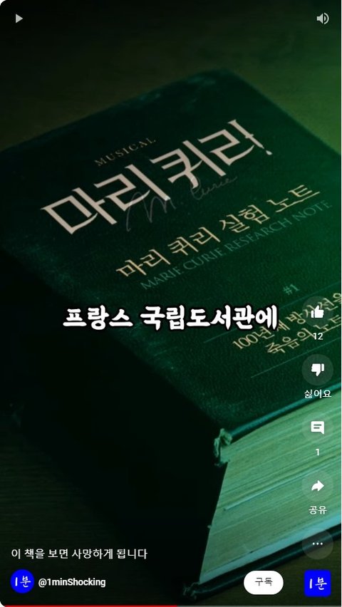 받은 프랑스의 과학자 마리퀴리의 노트 입니다.