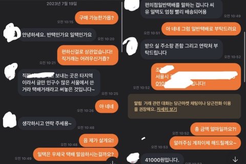 그랬더니 직거래는 못한다는거 반택, 일택 선택하라고 해서 내가 편의점 택배는 안해봐서 전혀 몰라서 그 사람한테 물어보고 일택으로 받는다함