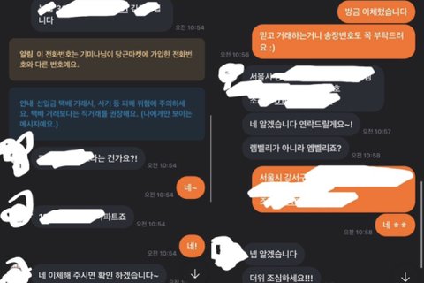 거래 성사하고 이체 확인하면 진행 한다길래 바로 즉시 이체 해줌 그러고 ‘송장번호’ 꼭 알려달라고 요청함.