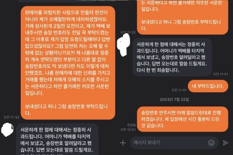 아니 그정도 얘기했고 자기가 보냈다고 하는거면 송장번호 주면 될일 아님?????