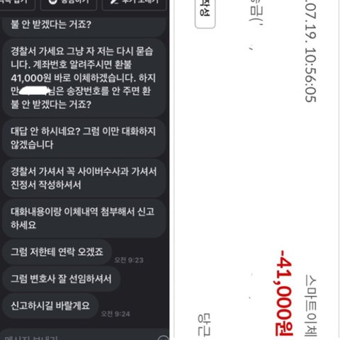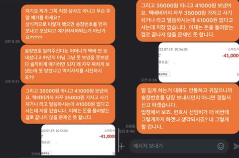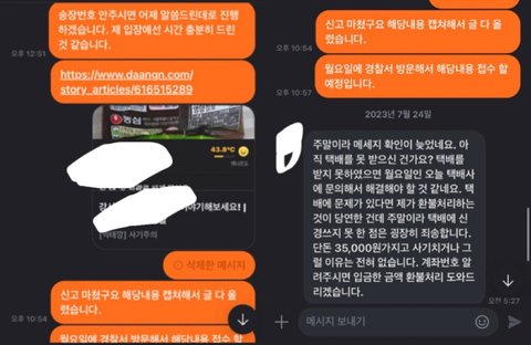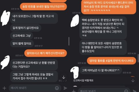 너무 깊은 빡침이 올라와서 내가 그쪽 직장 상사도 아닌데 왜 주말 얘기를 하냐 송장 번호를 보내던지 경찰서 가서 신고를 하겠다 둘중에 선택할고 하면서 변호사 선임도 하겠다고 얘기함