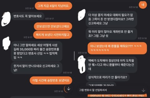 아니 개웃긴게 택배사에 알아보고 처리하겠다는게 자기는 송장 번호 알고 있는거 아님???????