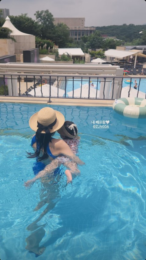 아기랑 물놀이 하는 손연재 이모