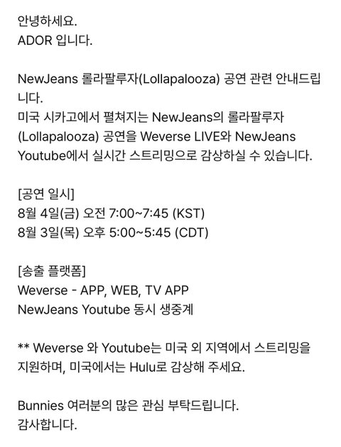 헐 뉴진스 미국진출하네 룰라팔루자 공연
