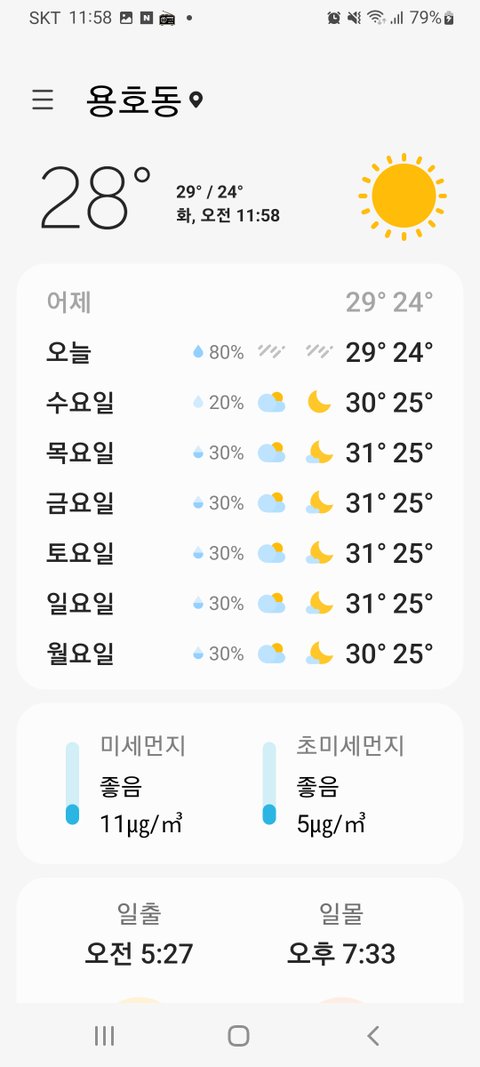 이런날씨 믿을수 있나요? 한곳은 네이버와 완전 똑같고 한곳도...