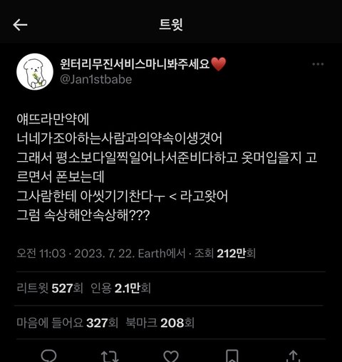 인용보니까 서운하다는 사람 엄청 많은데 혹시 친구사이여도 서운한 애들 있음?? 나 친구랑 약속잡을 때 가끔 저 말 했는데 서운해했을까봐