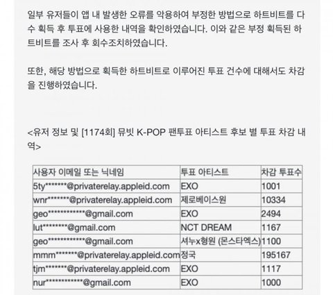 뮤빗투표 부정 또 걸림 (죄다 다하네)