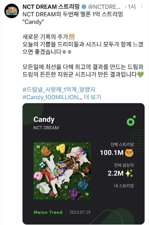 우리 캔디 1억스밍 돌파했네 (인증0)