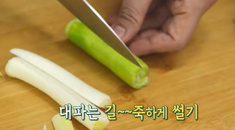 대파 길쭉하게 썰고 반 가르기
