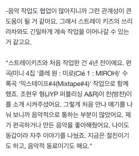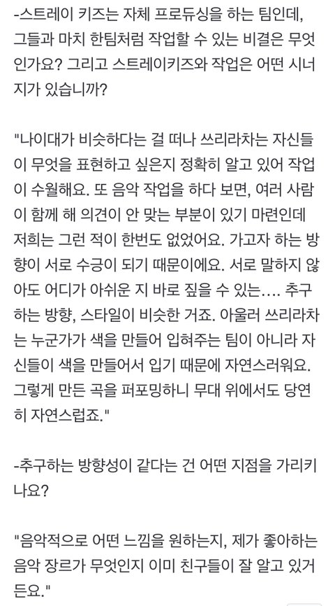 ㅂㄹㅅㅊ님 인터뷰 중에 스키즈 나온 부분만