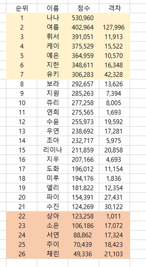 내픽 유키ㅠ 6위랑 격차가 생각보다 크다..