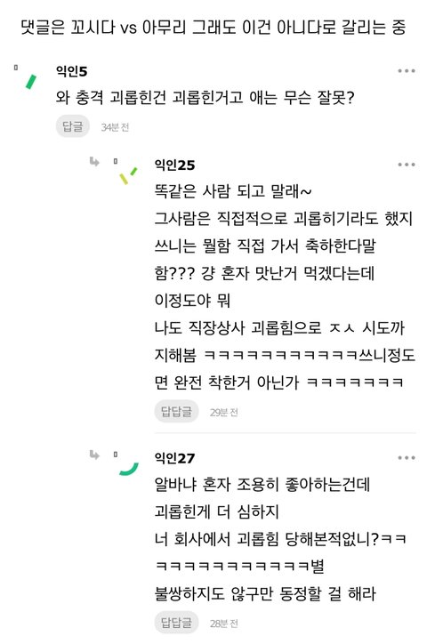 사람이니까 자기가 당한거 생각하면 꼬시다 생각할수 있다 생각함. 그런데 인터넷 공간에 저렇게 글 쓰고 나대는꼴은 인간적이지 못한거 같음. 그냥 혼자 맛있는거 먹으면서 축하하면 될 일 가지고. 저게 요즘 애들 인성 기본값인거 같음. 남한테 피해주는것도 아니고 나혼자 하겠다는데 뭐 그정도도 못해 이런거.