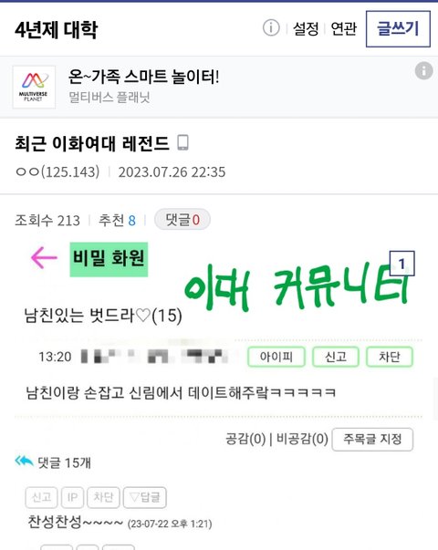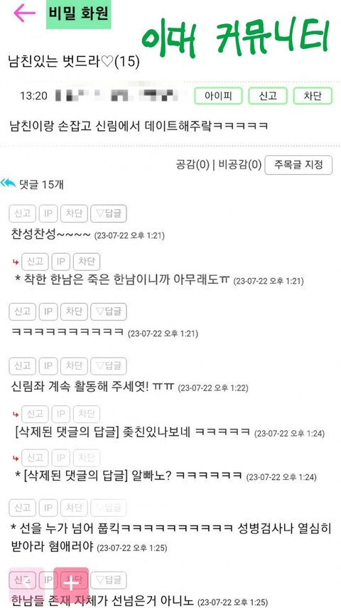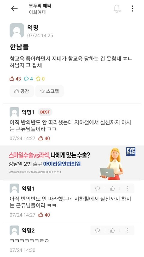 여초커뮤애서는 여대 올려치며 정신승리 계속해봐 ㅋㅋㅋ