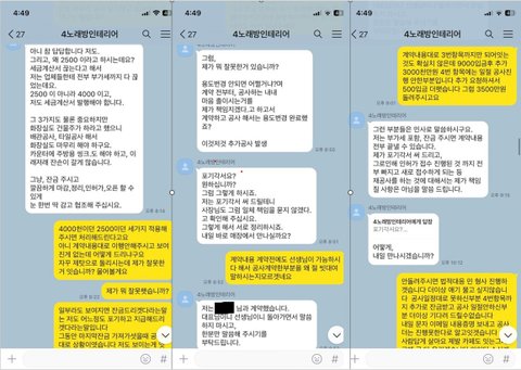 처음엔 작업내용에 대해 먼저 다 해주고, 사진 보내주고 일사천리로 진행되겠구나 싶은 생각 들게끔 하더니